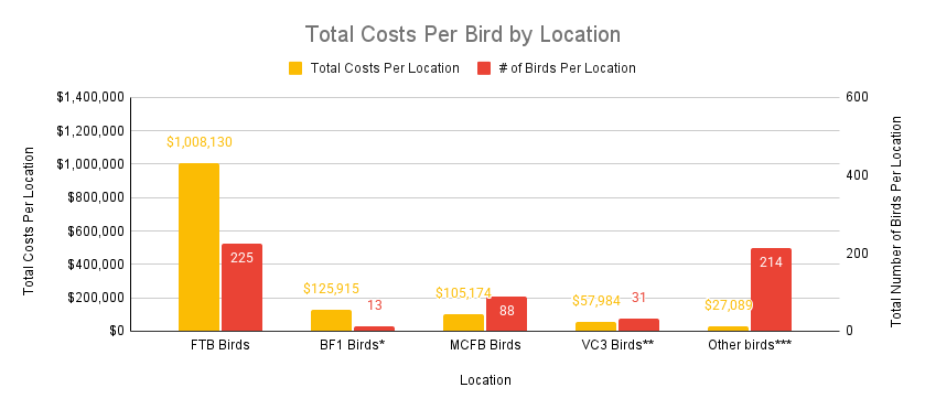 While this analysis aimed to assess service distribution and cost-effectiveness, it was limited by incomplete records, vague service descriptions and inconsistent data across platforms. Despite these limitations, the data indicates a strong imbalance in financial priorities, with the bulk of funding going to costly and extended stays at select facilities while many other birds receive minimal or no care.